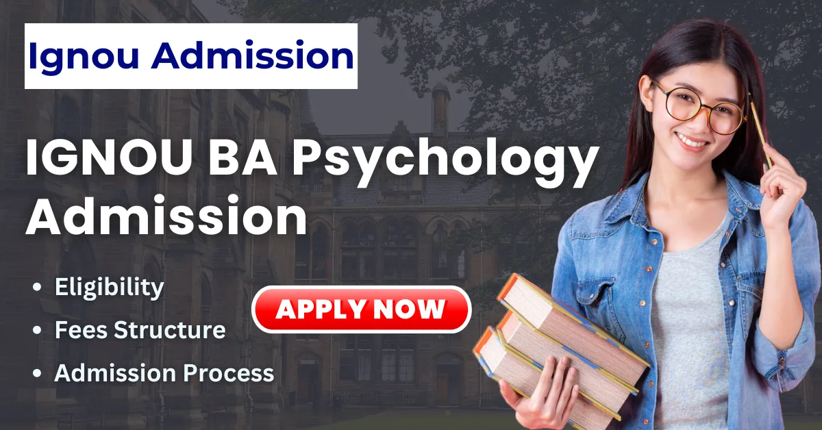 IGNOU BA Psychology Admission 2026 is now open for students interested in understanding human behavior and mental processes. This 3-year undergraduate program is available in regular mode at Subharti University. Students must have completed 12th grade from any recognized board with a minimum of 45% marks. There is no specific subject requirement, making it accessible to students from all streams. The application fee is ₹500, and the total course fee ranges from ₹30,000 to ₹45,000 per year. The admission last date is 28 January 2026, so interested candidates should apply before the deadline.